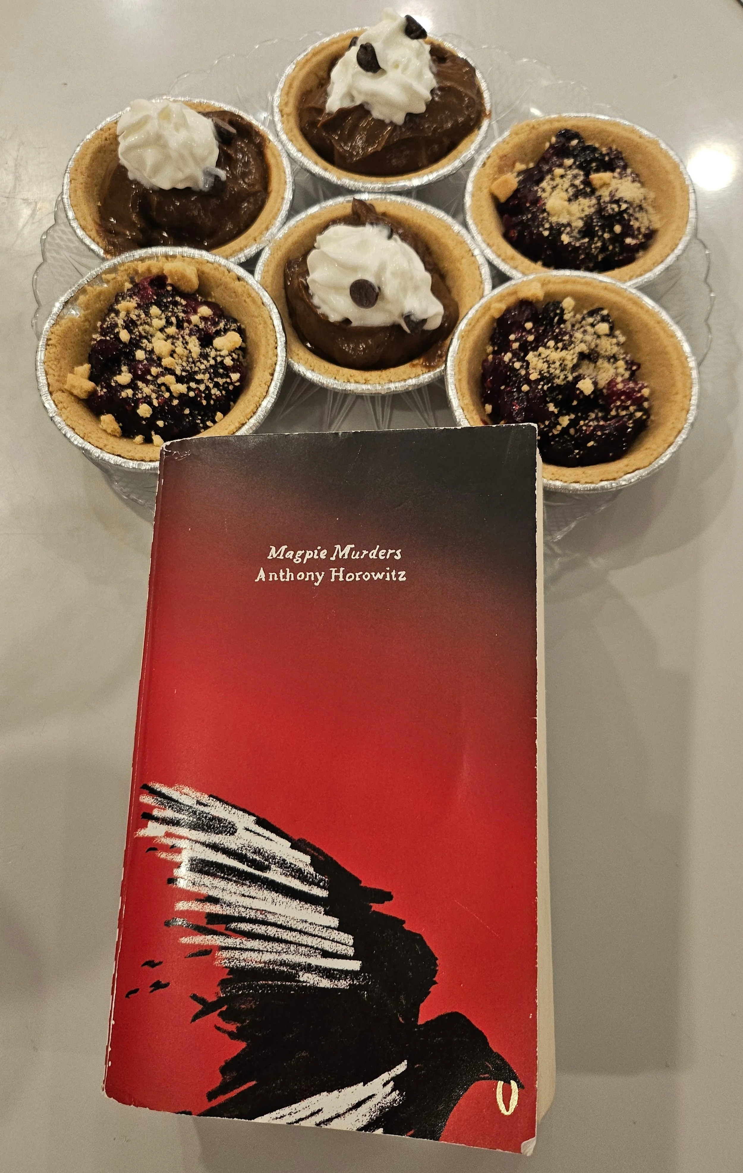 There wasn’t a clear-cut dessert for this book, so we jumped on the idea that Alan Conway loved being cheeky with language. We made some mini pies that we dubbed “mag”pies and enjoyed the sweet treats.